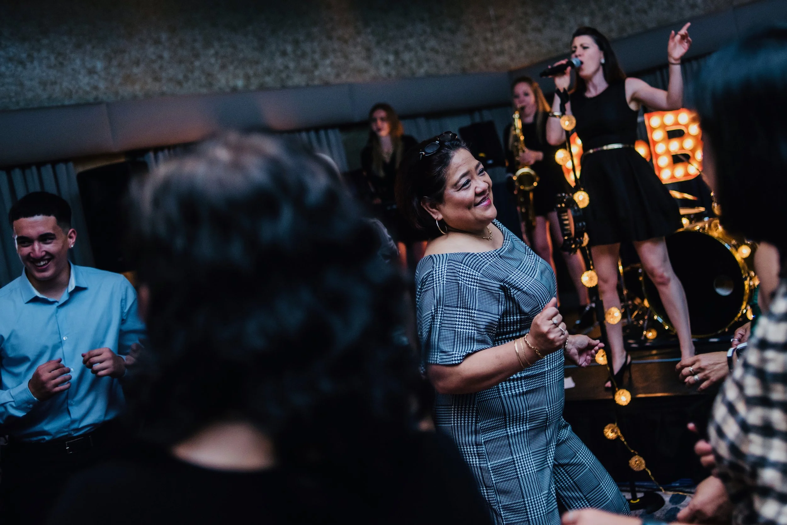 “What a band! Thank you so much Karen and team for your professionalism and superb performance. We loved dancing to your great range of material with slick song transitions and epic belters - Proud Mary was just too good! So glad we opted for the full 8-piece lineup, having that extra touch of brass made it for us. Hope we can party with you again soon!”